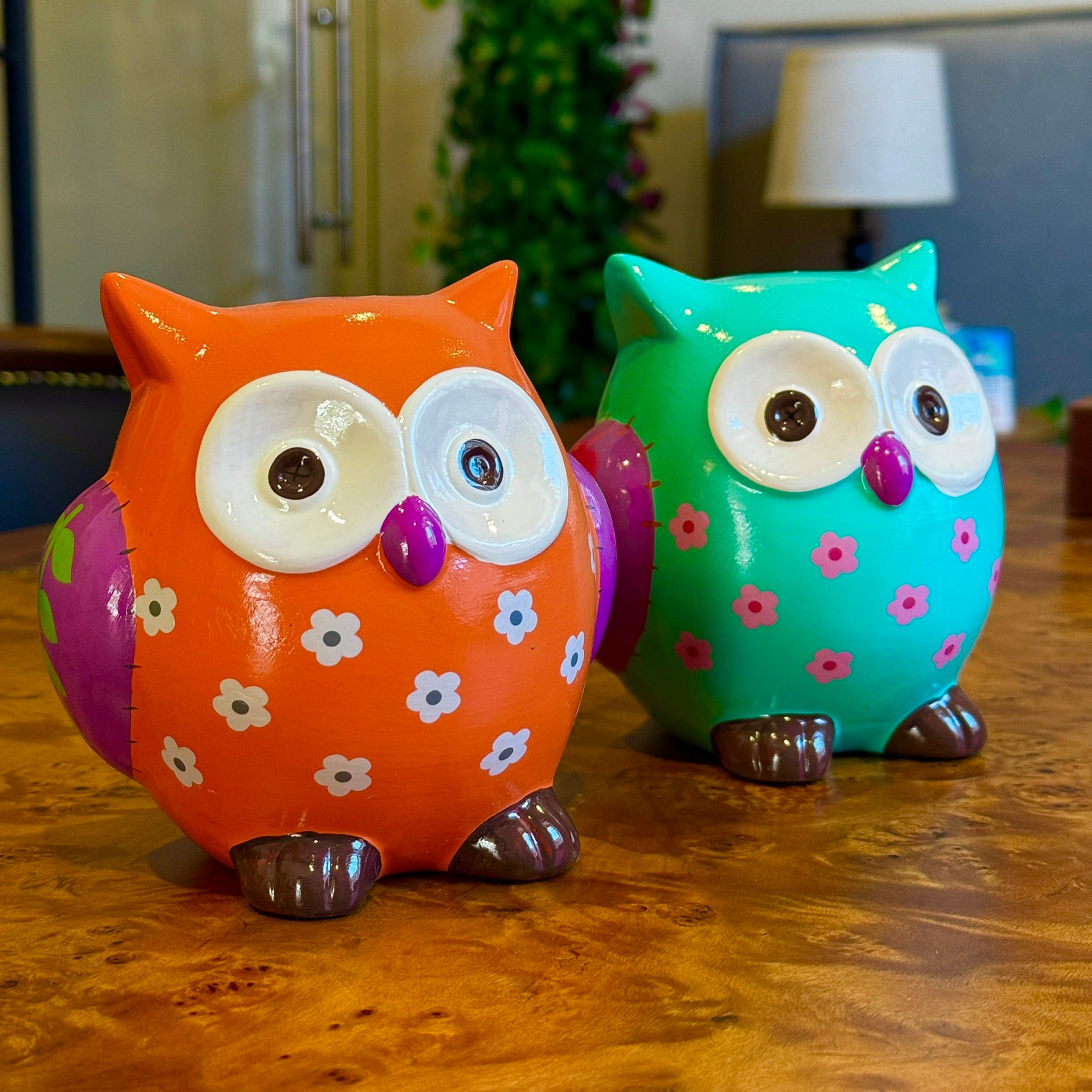 Alcancia en forma de búho. Diferentes colores.